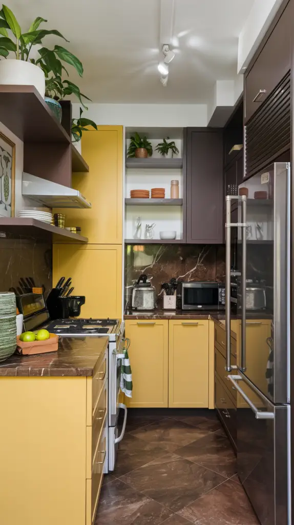 Combining open shelving with cabinets in small kitchens creates a balanced, spacious look. Use the shelves for frequently used items and decor, while keeping essentials hidden in cabinets. Choose a neutral color palette to avoid overwhelming the space.