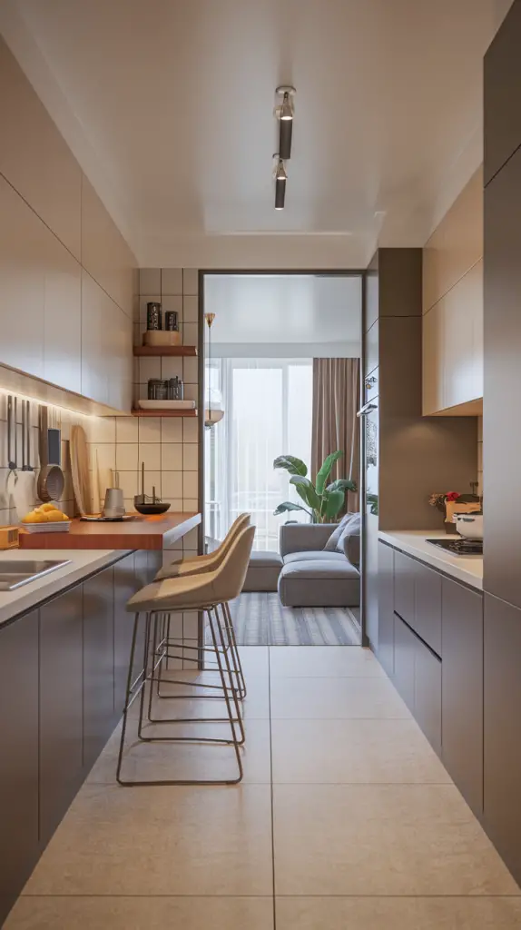 Choosing a neutral color palette with occasional bold accents adds depth without overwhelming the space. Compact kitchens can feel expansive with clever design tricks and personalized touches.